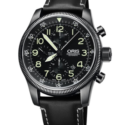 中央に配置された夜光塗料を施した時針、分針、そして赤いクロノグラフ秒針は、優れた視認性を提供します。3時位置には赤い針のスモールセコンドサブダイヤル、9時位置には赤い針のクロノグラフ分サブダイヤル、そして6時位置には日付表示窓が配置されています。